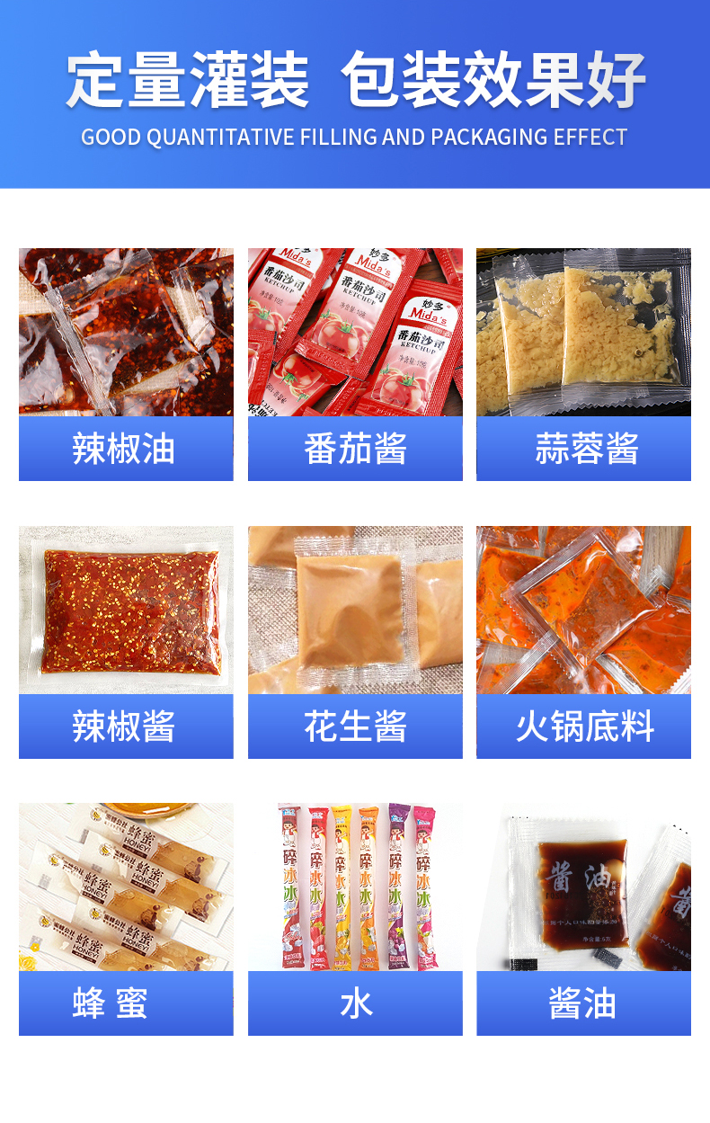- 辣椒油、豆瓣醬、番茄醬、火鍋底料、沙拉醬、胡椒醬、果醬、涼皮料水等各類帶油性懸浮物料